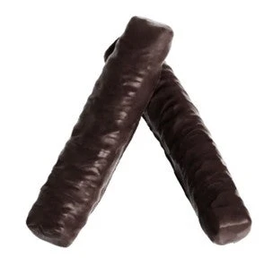 Pink Lady pure dark chocolate-covered liquorice sticks. Bag contains four sticks.
